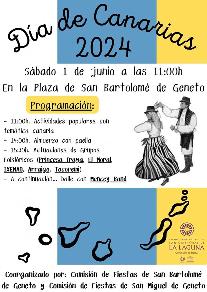 Princesa Iraya también estuvo presente en la iniciativa de La Comisión de Fiestas de San Bartolomé de Geneto y la Comisión de Fiestas de San Miguel de Geneto, que han unido fuerzas para organizar y celebrar juntos unos de los días más importantes para nuestro archipiélago, el Día de Canarias. Tuvo lugar el Sábado 01 de Junio, con diversas actividades para todas las edades, desde las 11:00 de la mañana hasta bien entrada la noche..