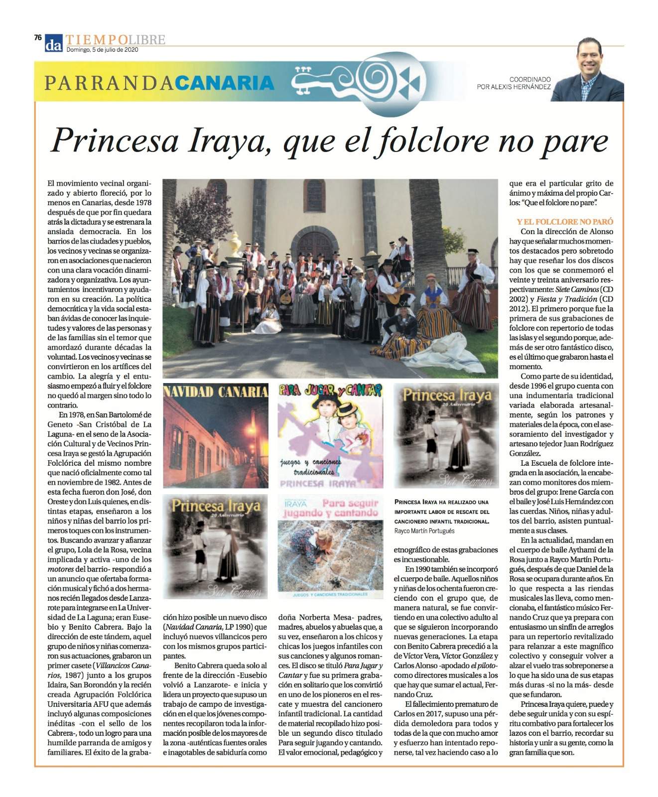- La Agrupación Folclórica Princesa Iraya, con sus más de 35 años de historia, trabajos discográficos y centenares de actuaciones por todo el mundo, constituye un referente, en la cultura popular canaria imprescindible.