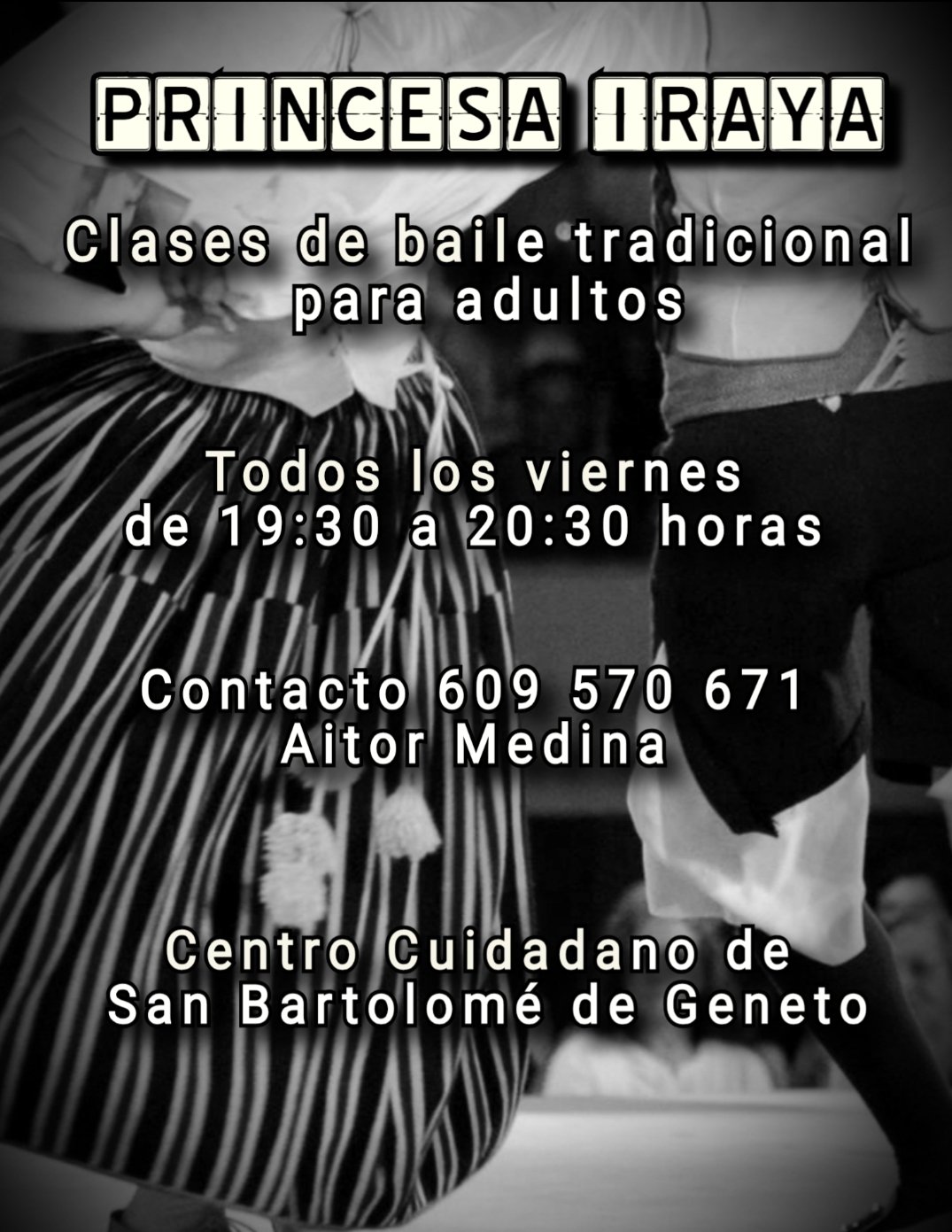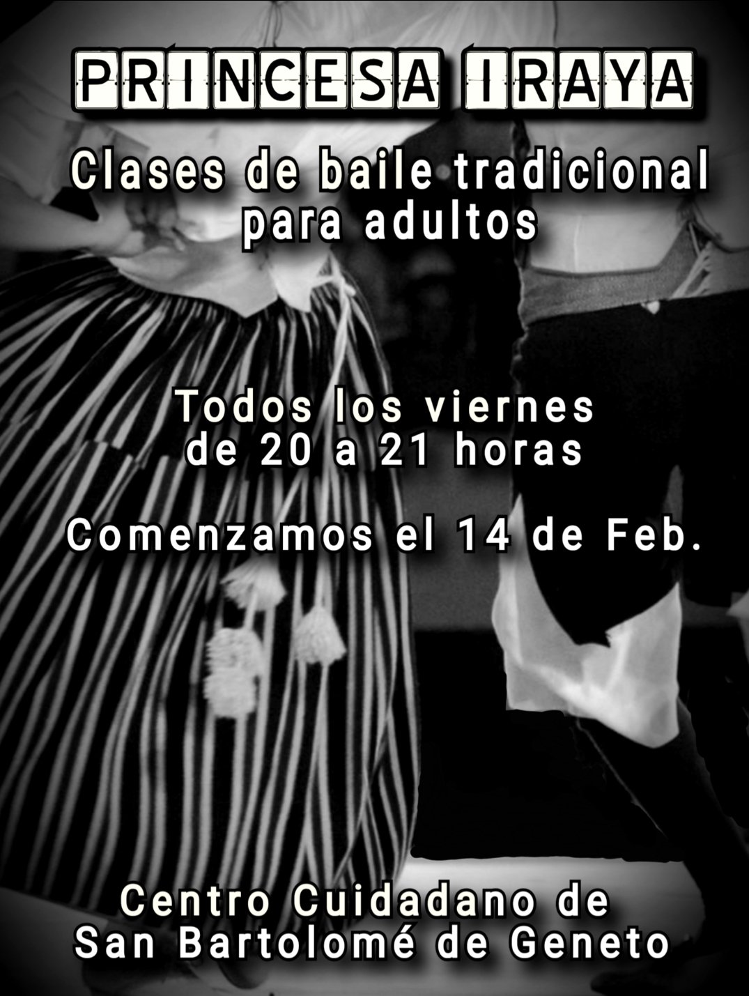 Tanto de iniciación como de perfeccionamiento. Si quieres formar parte de nuestro cuerpo de baile no dejes pasar la oportunidad. Serán los viernes por la tarde. Los horarios se irán definiendo según se vayan formando los grupos.