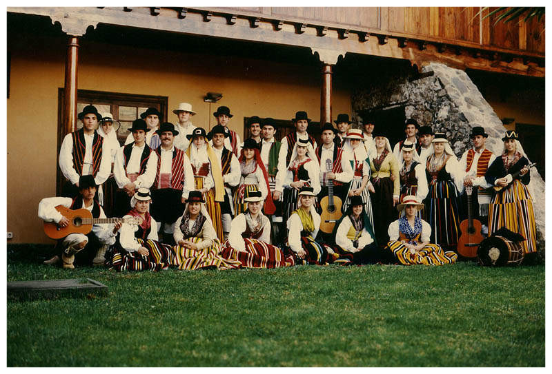 ⚜️ Desde 1996 el grupo cuenta con una de las indumentarias tradicionales más fieles de las islas, confeccionada y elaborada de forma artesanal, según los patrones de la época y con la materia prima original. Para realizar esta vestimenta se ha recurrido al asesoramiento de los mejores técnicos y artesanos de las islas.